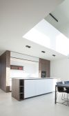The dining area serves as a central atrium between the cosy and secluded lounge on the one hand and the kitchen on the other. The open space above the dining room is embraced by an office and a mezzanine, with the latter having a beautiful view of the garden. Both the master bedroom and the guest room have their own bathroom.
