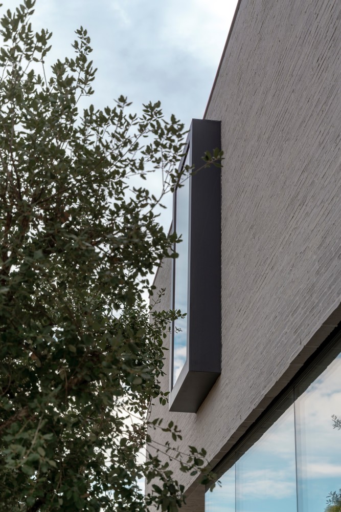 De niet-gesloten straatgevel straalt toegankelijkheid uit en markeert tegelijk een zorgvuldig opgebouwde overgang van openbaar naar privé.